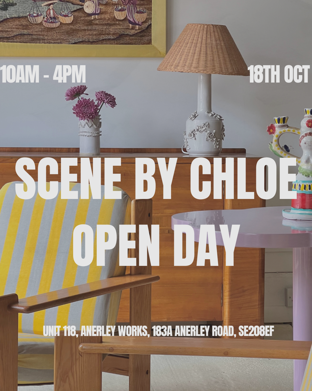 A curator of joyful and unexpected design, Scene by Chloe brings together vintage homeware that blends character, craftsmanship, and charm. Sourcing unique objects that can be bought or hired, Chloe creates a space where interiors, art, and storytelling converge. Her approach is instinctive yet considered—mixing eras, styles, and influences to cultivate a unique aesthetic.