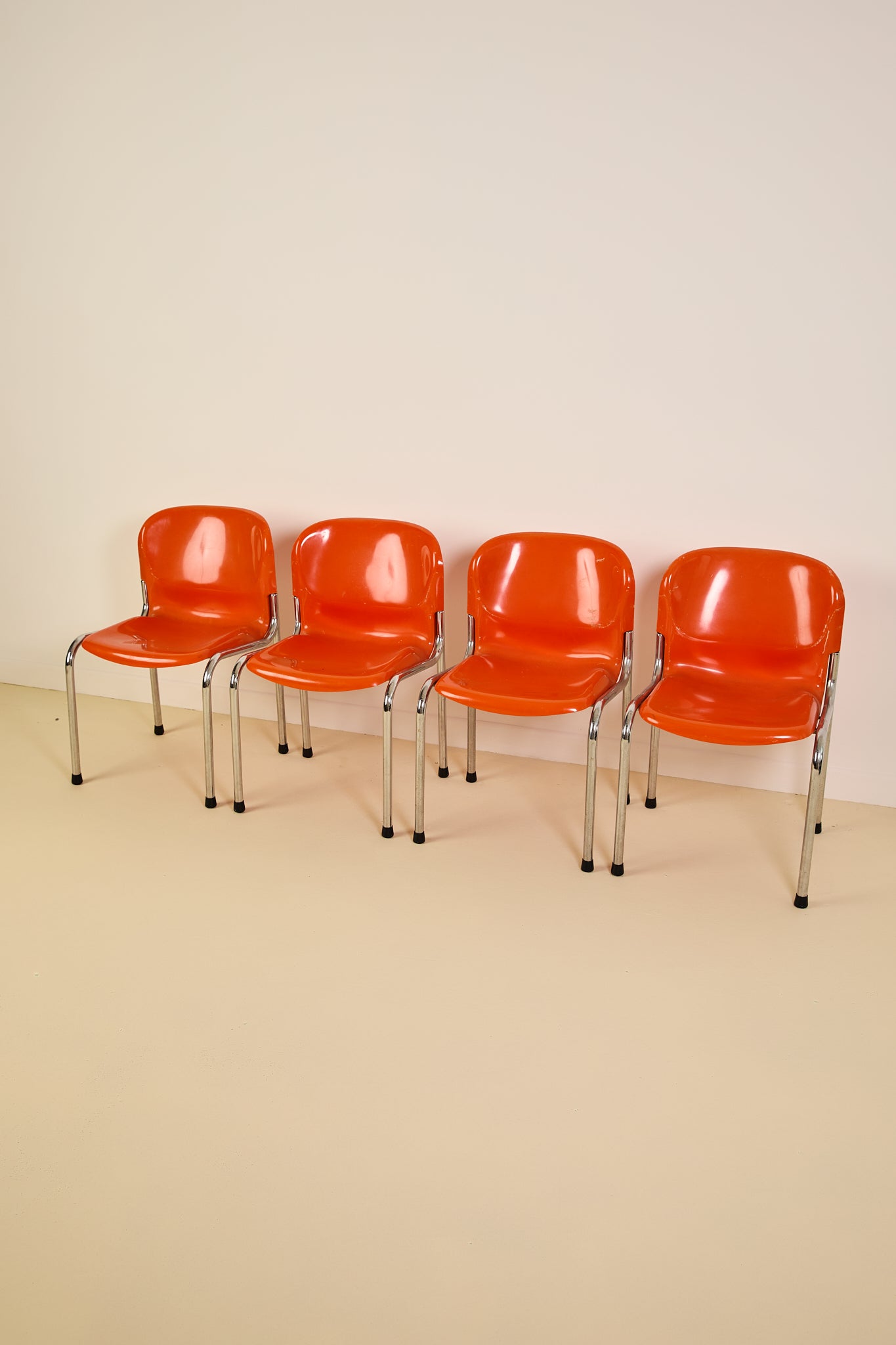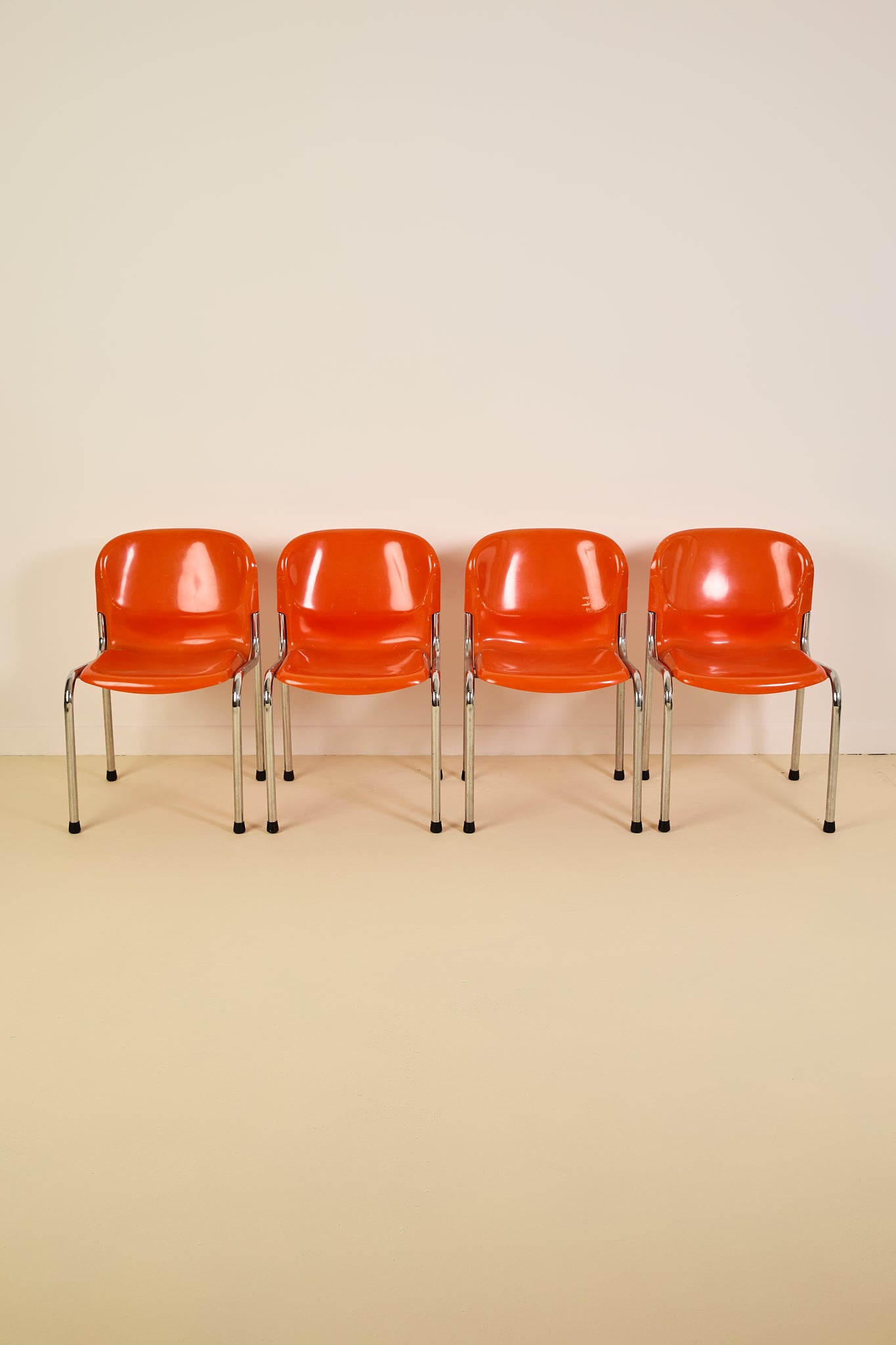 Set of x4 Original Red Stain Carimate Carver Chairs by Vico Magistretti