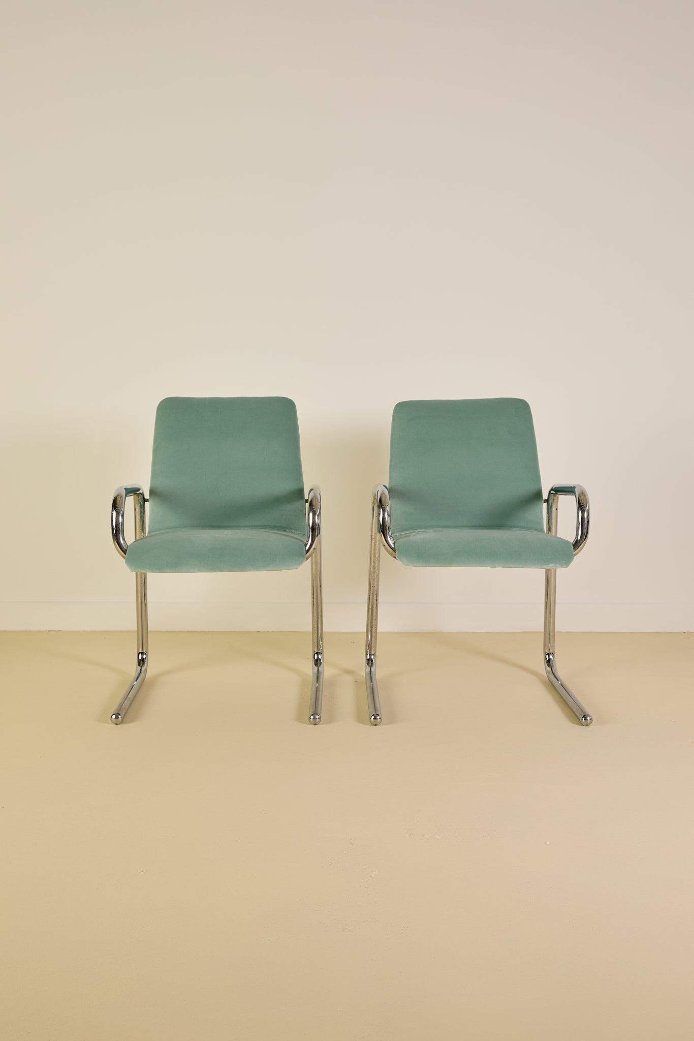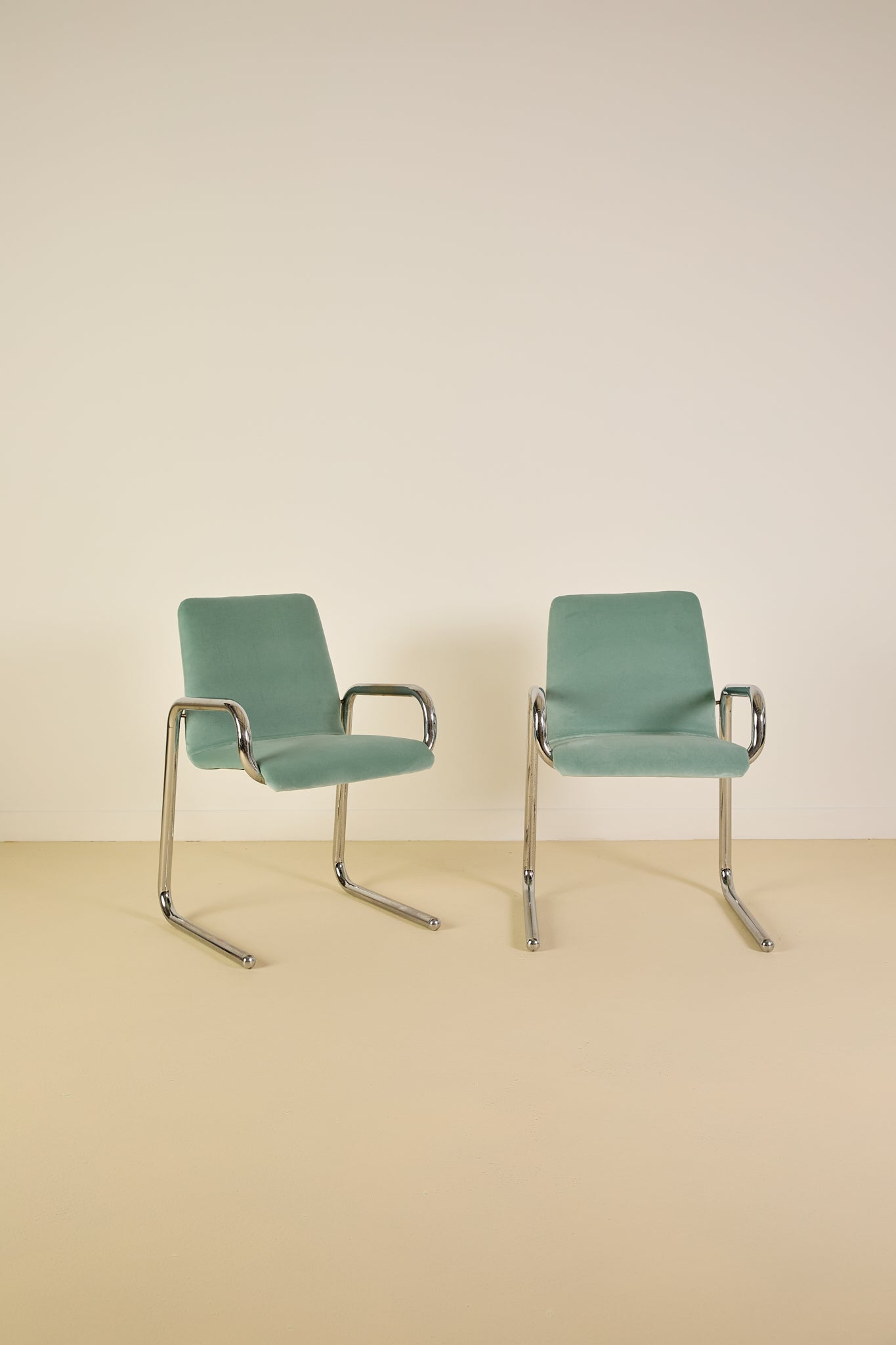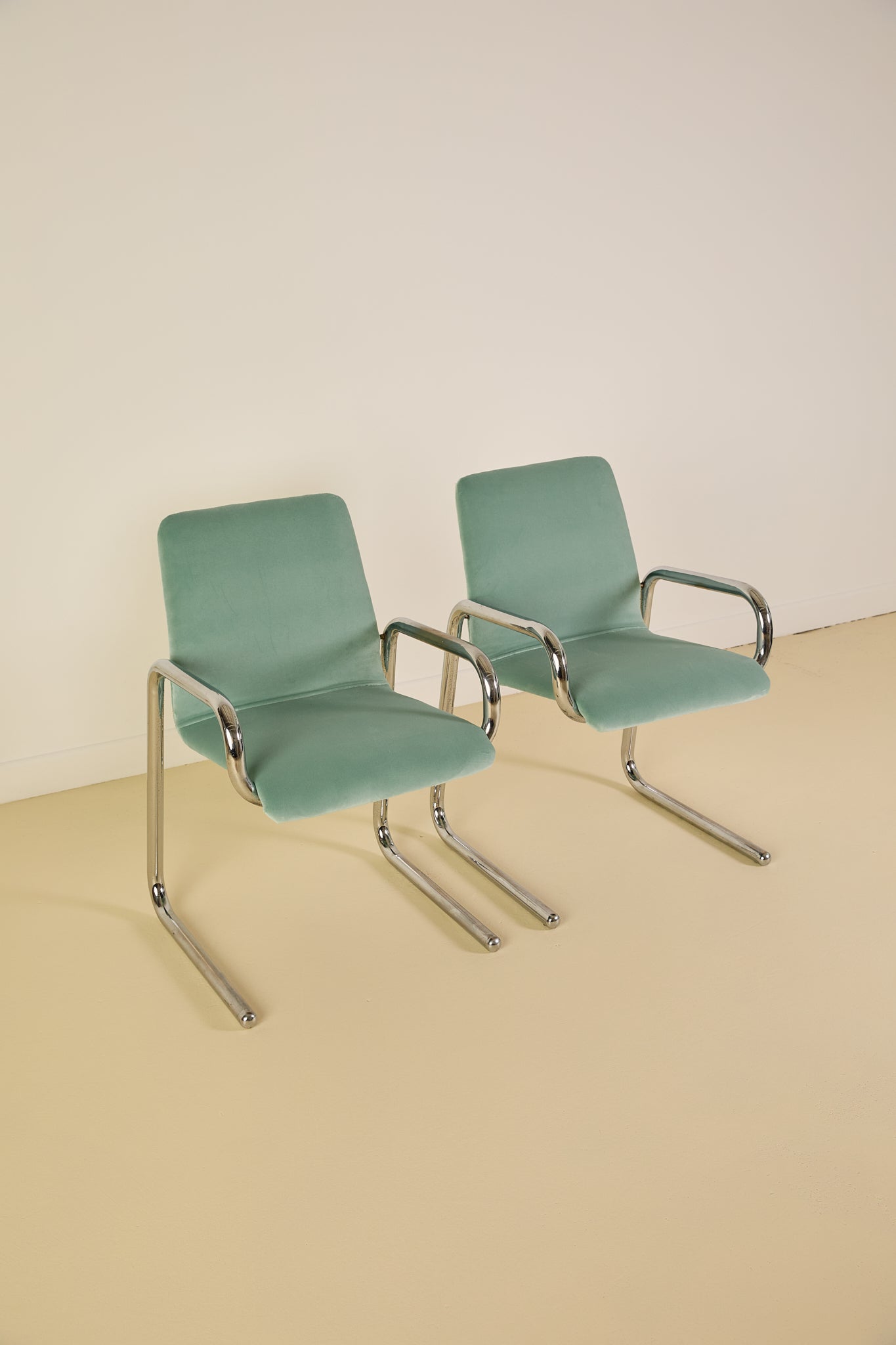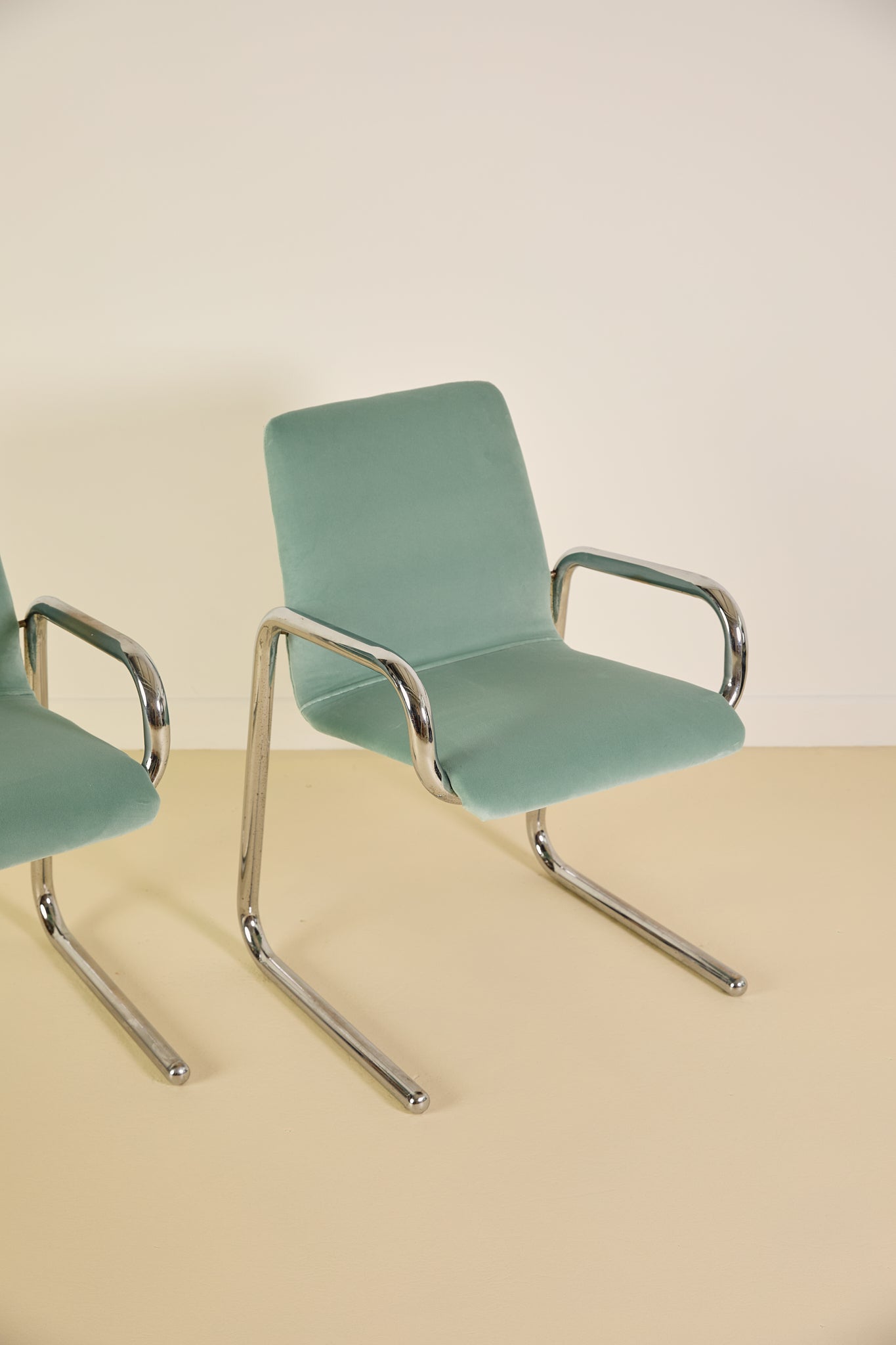 Chrome and Aqua Velvet Desk Chair (Sold Individually)