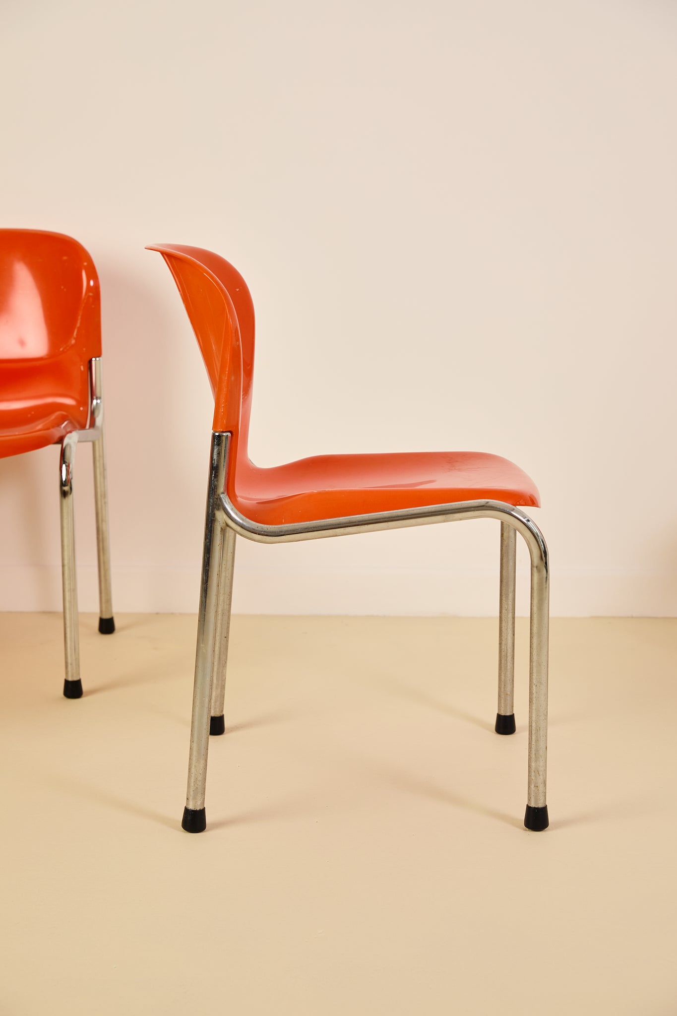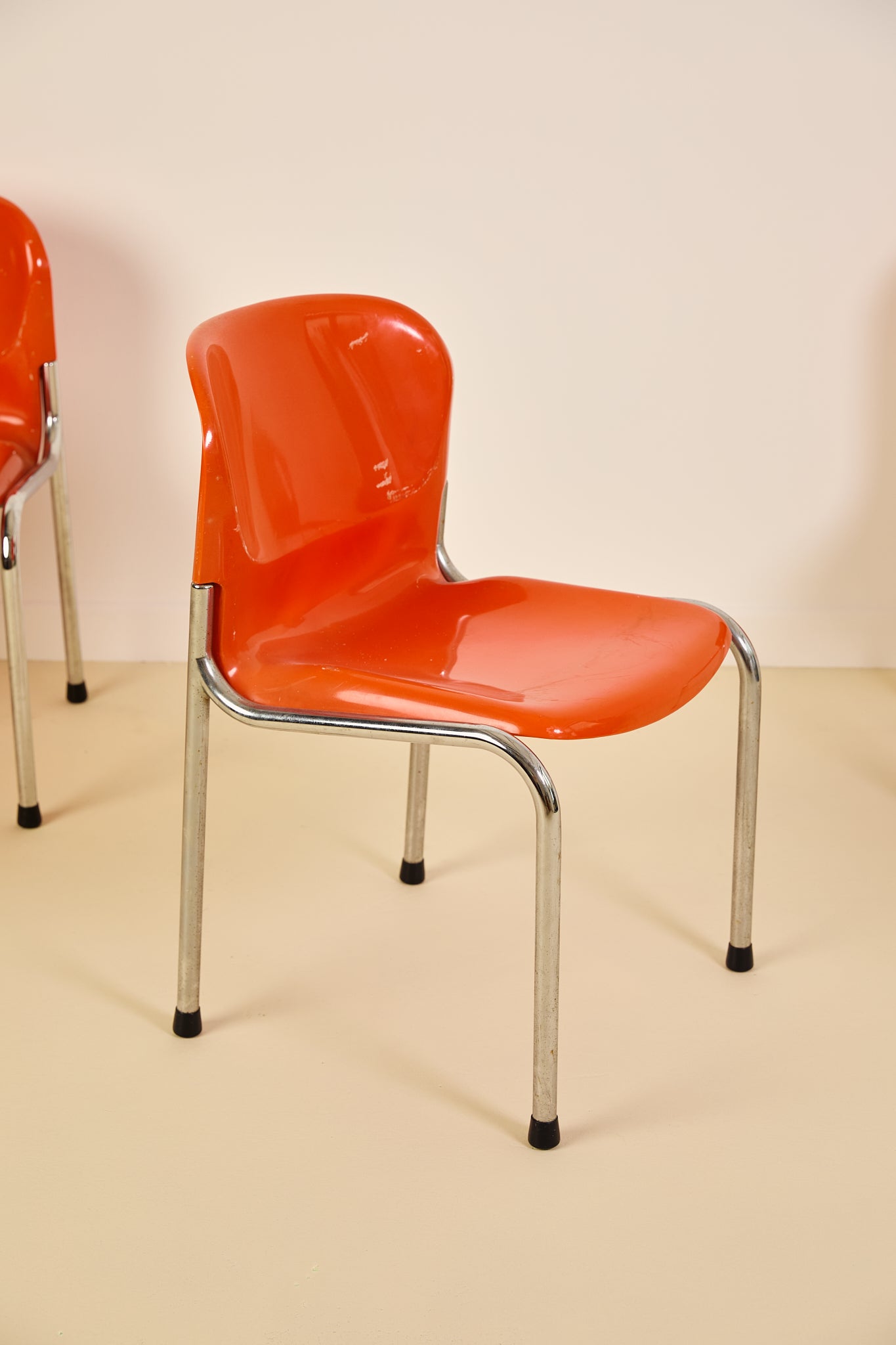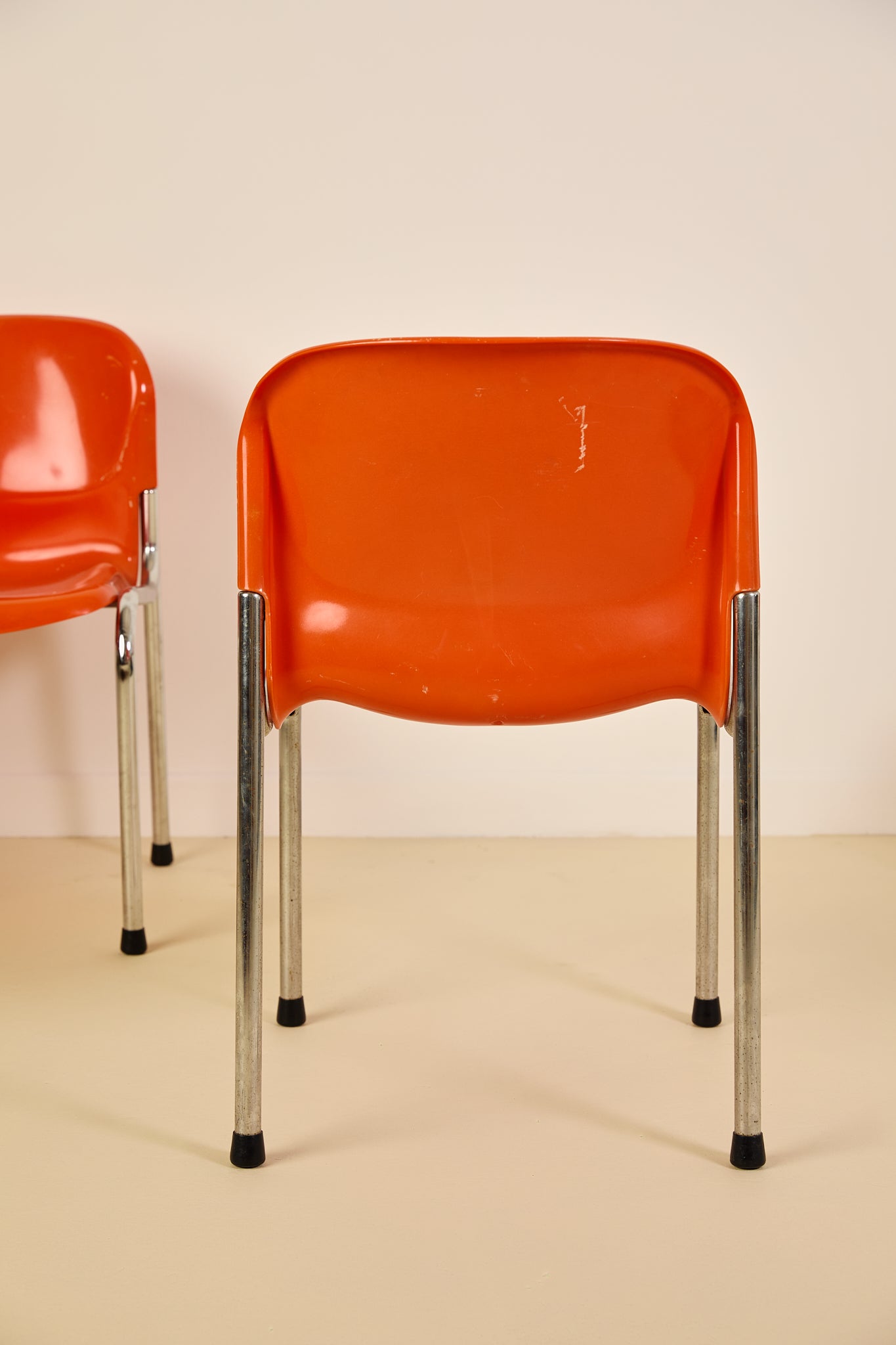 Set of x6 Oxblood Carimate Side Chairs by Vico Magistretti