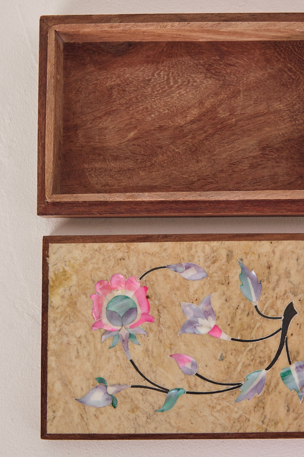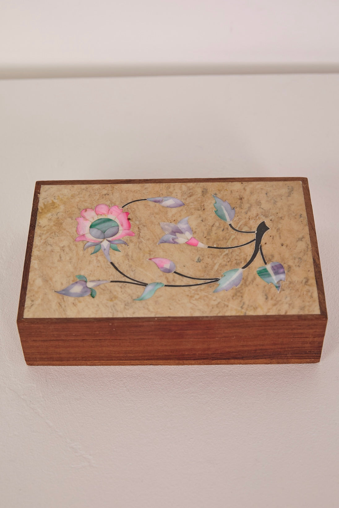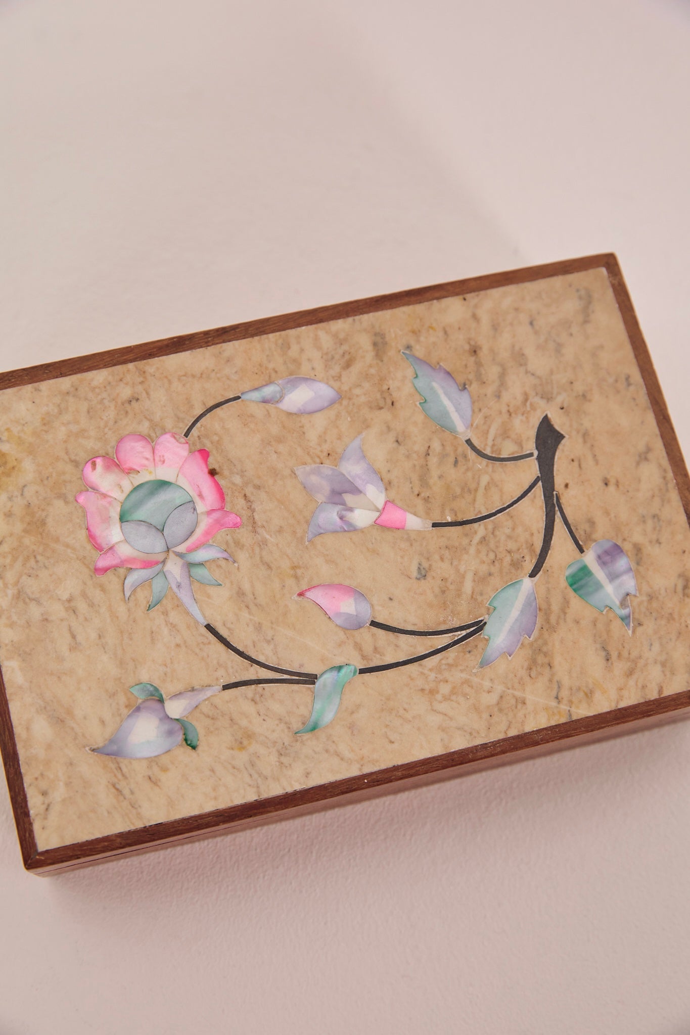 Wooden Box with Inlaid Mother of Pearl Detail