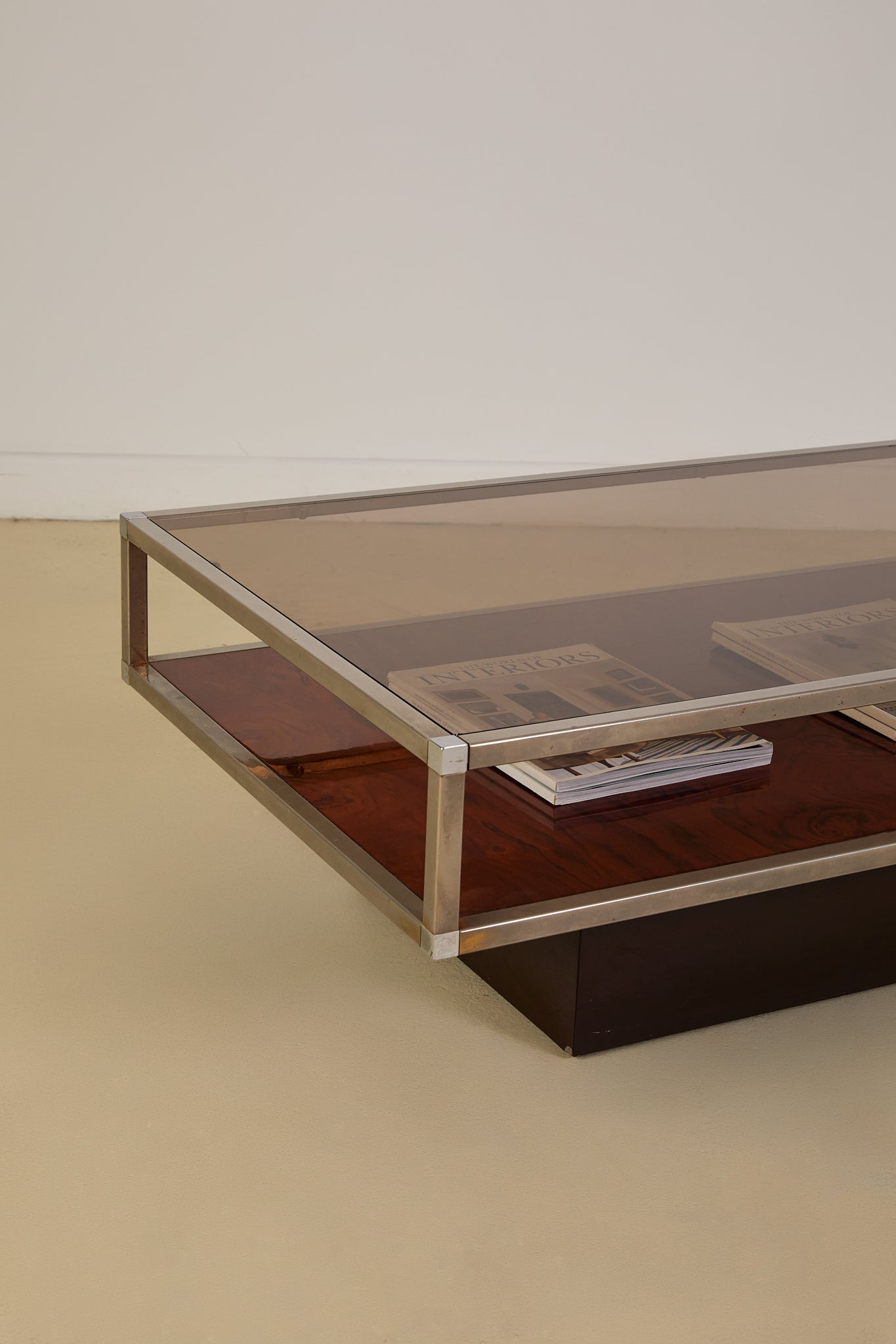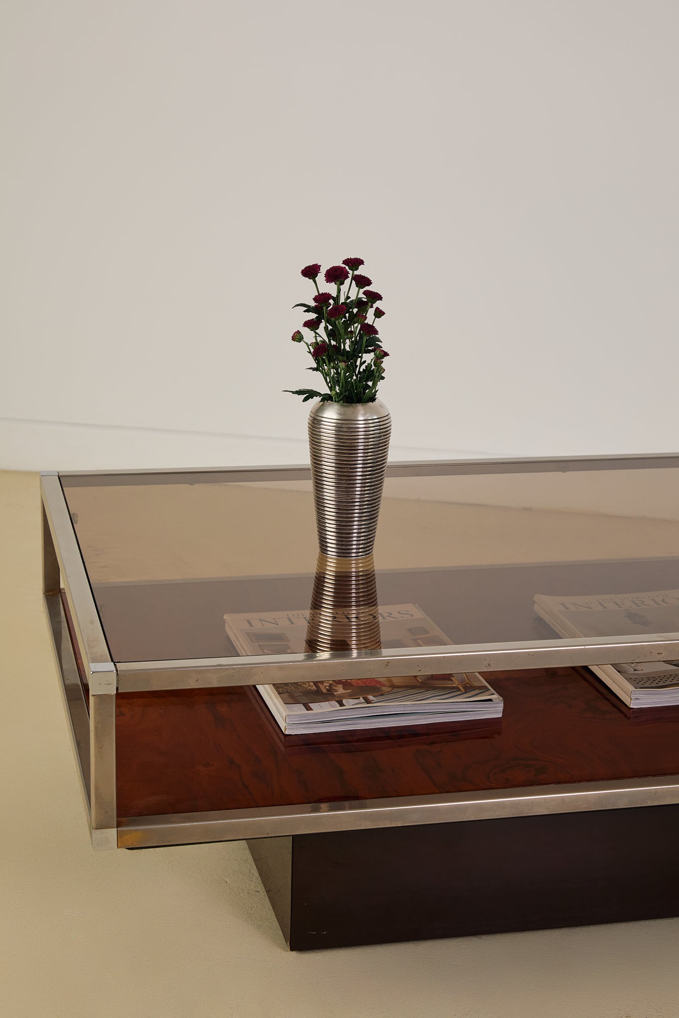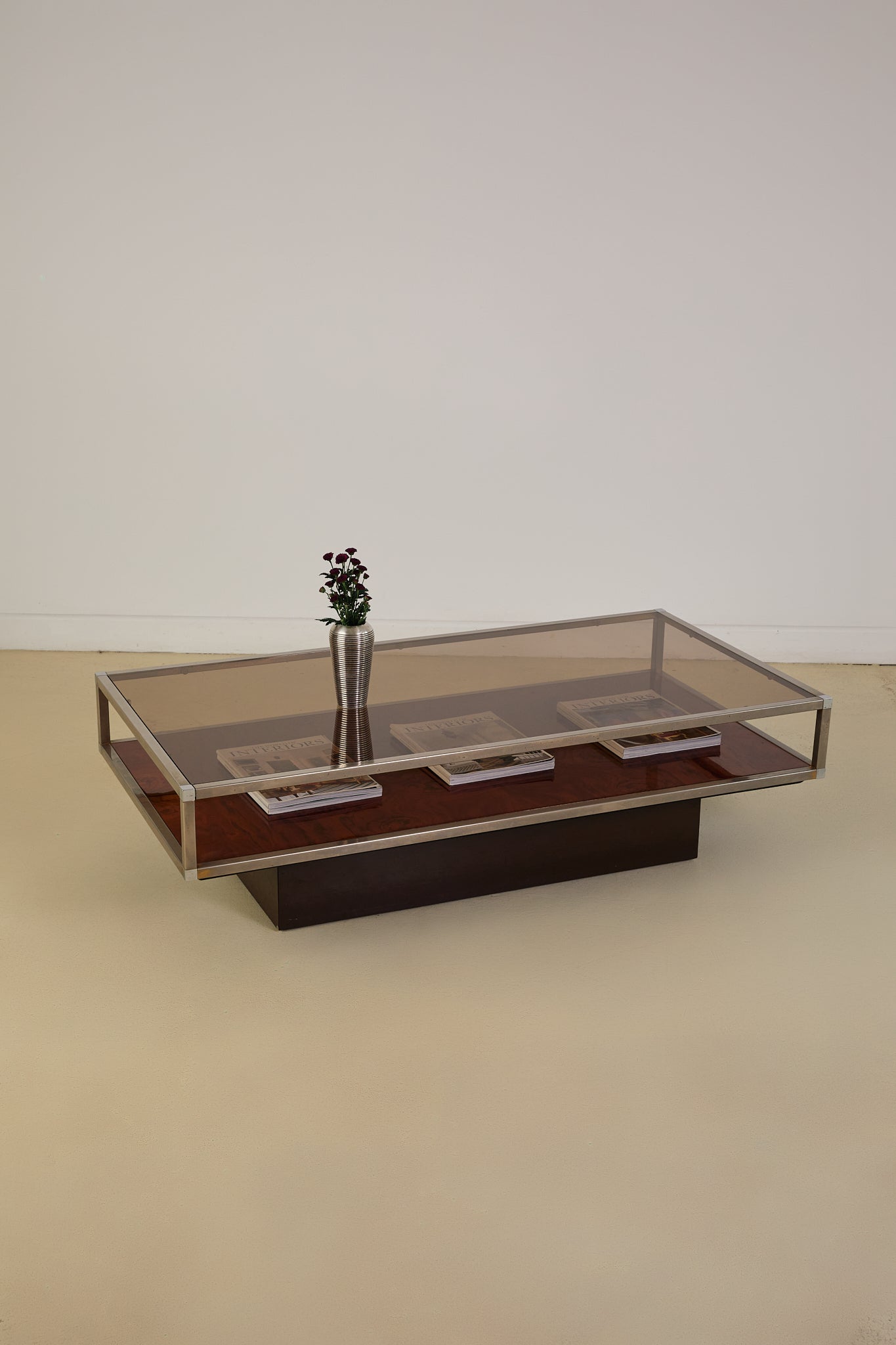 Burl and Chrome Coffee Table