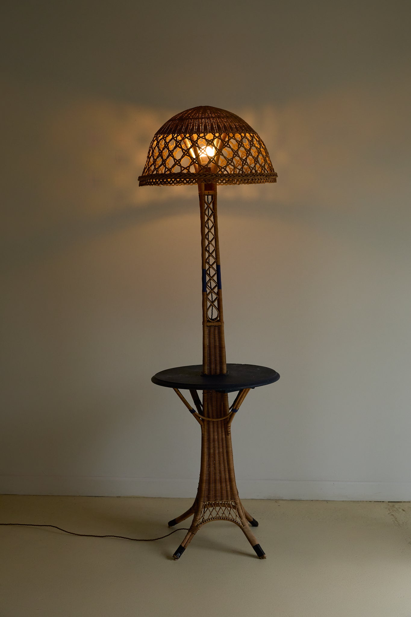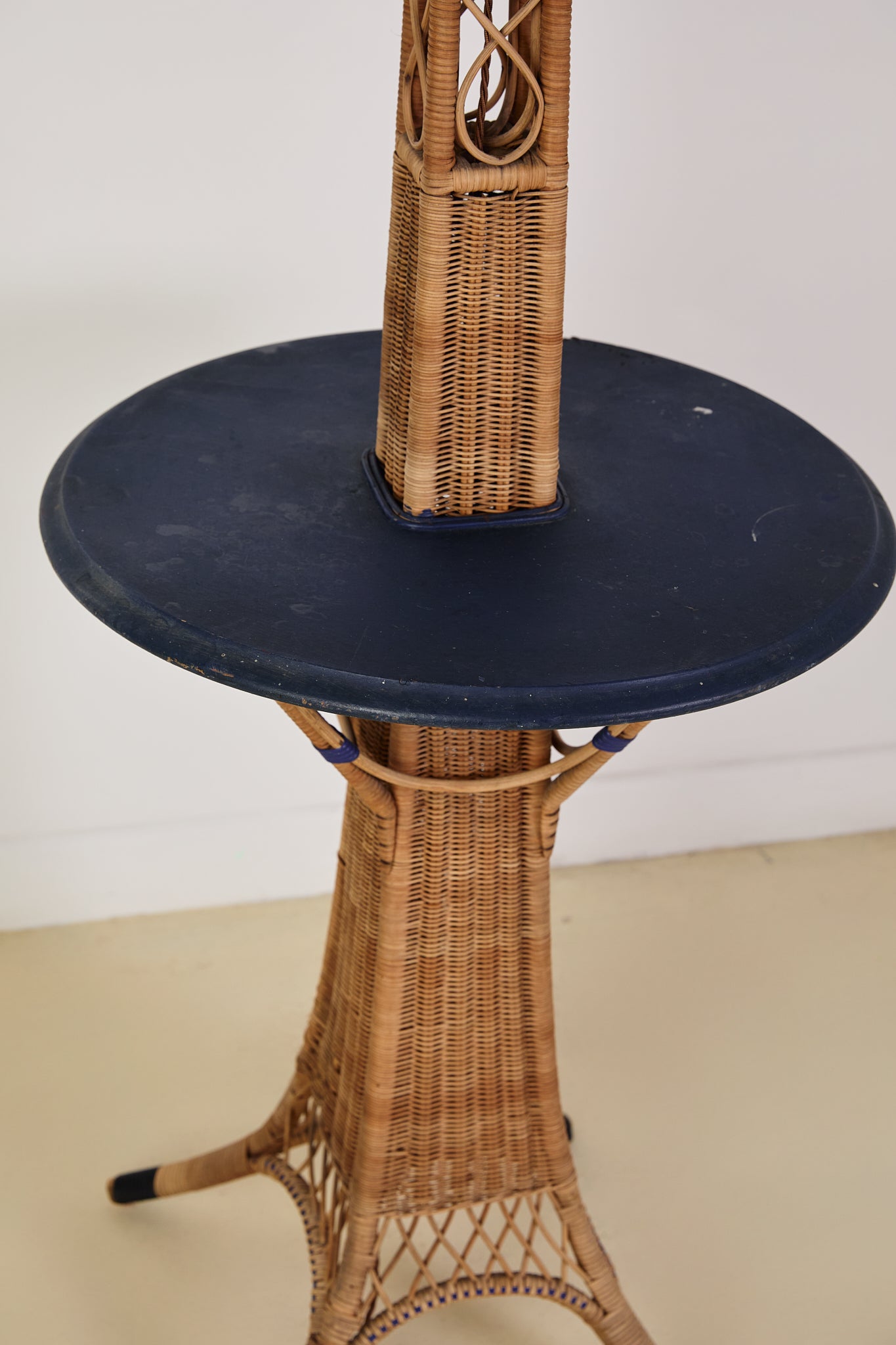 French Wicker Eiffel Tower Floor Lamp With Table