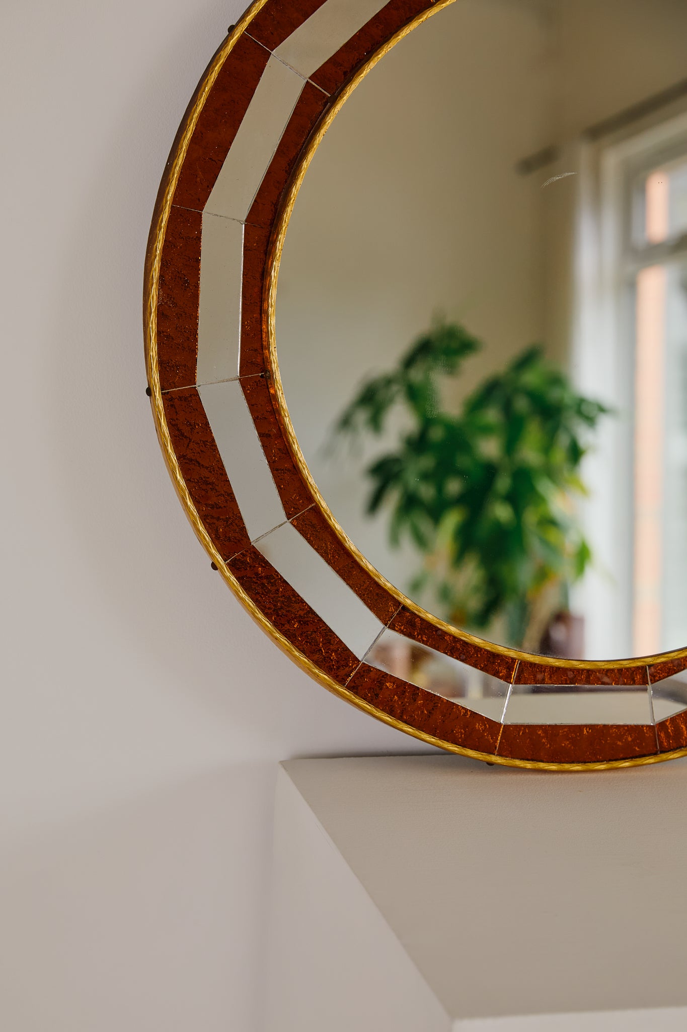 Italian Mirror With Orange Glass Mosaic Frame