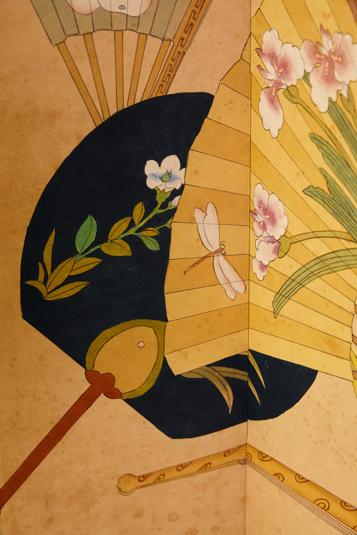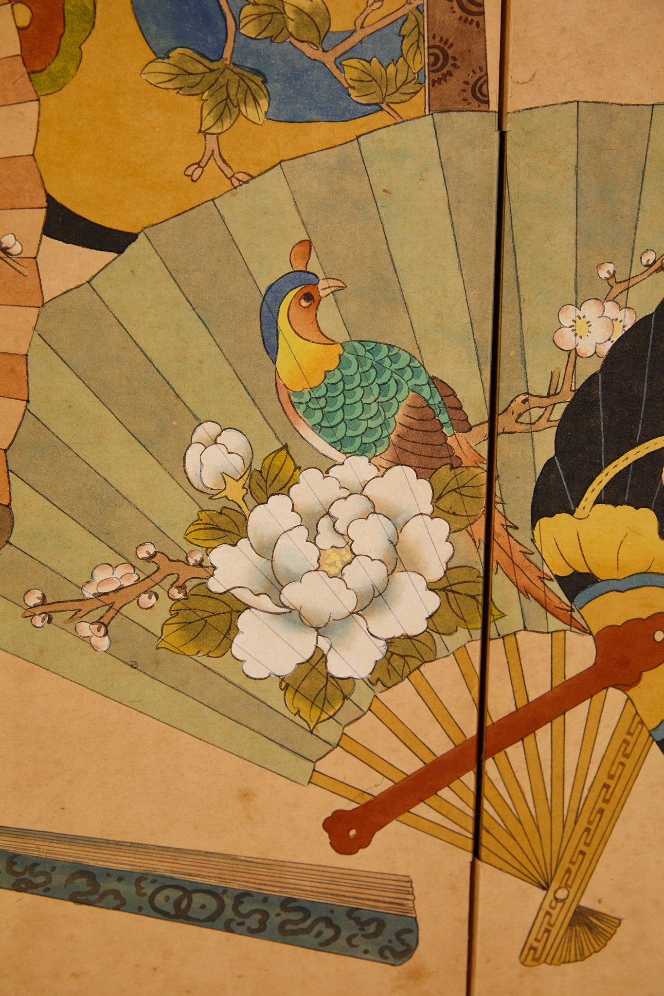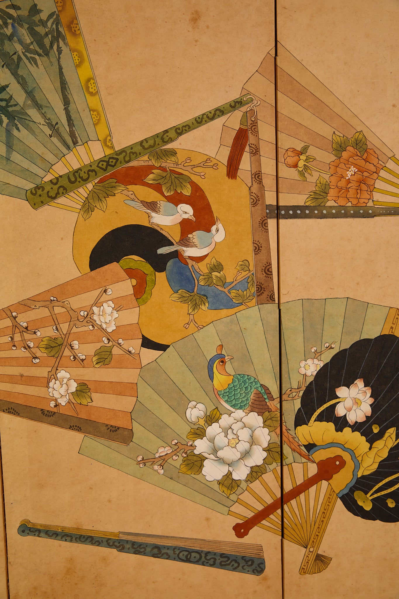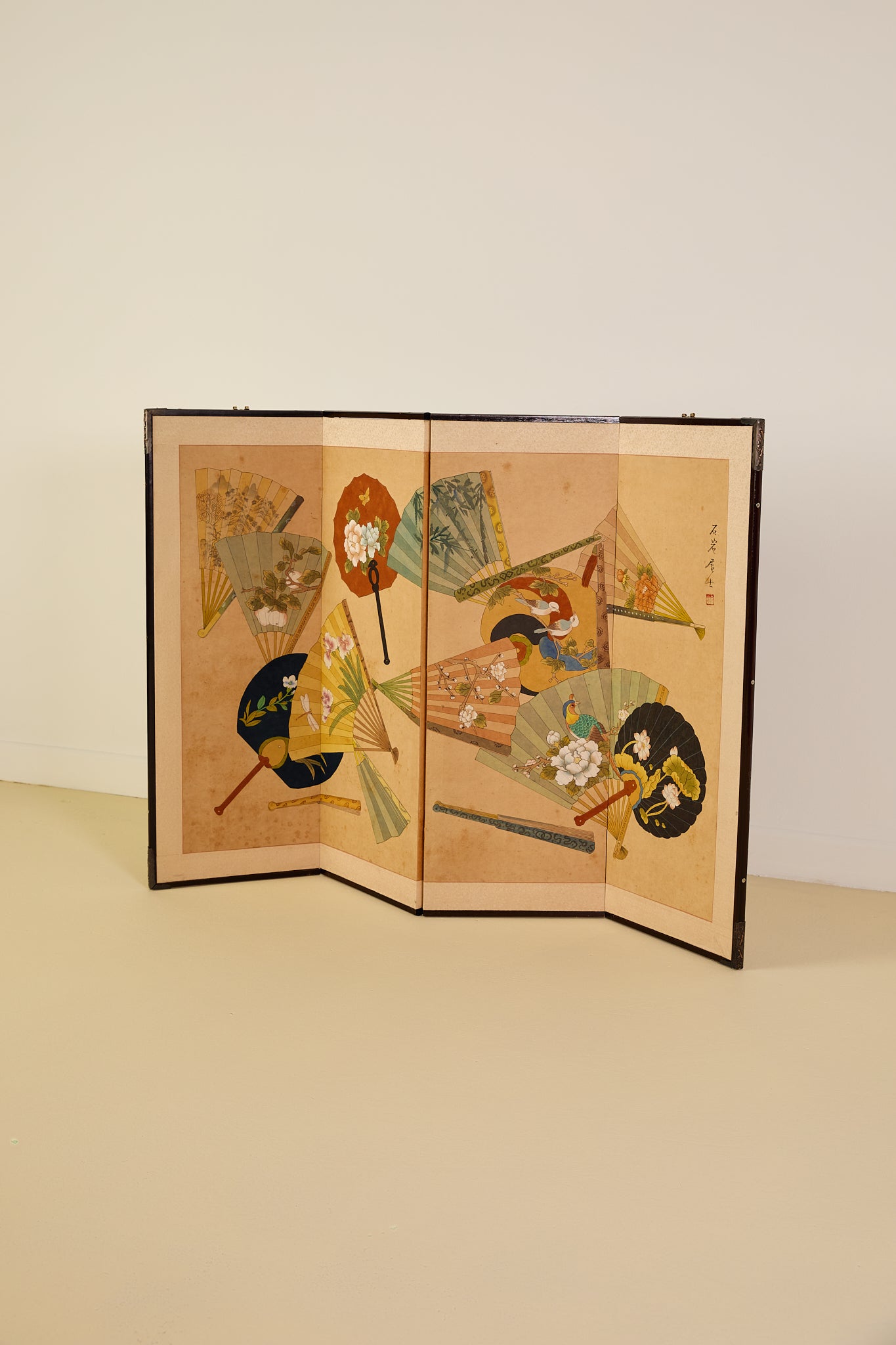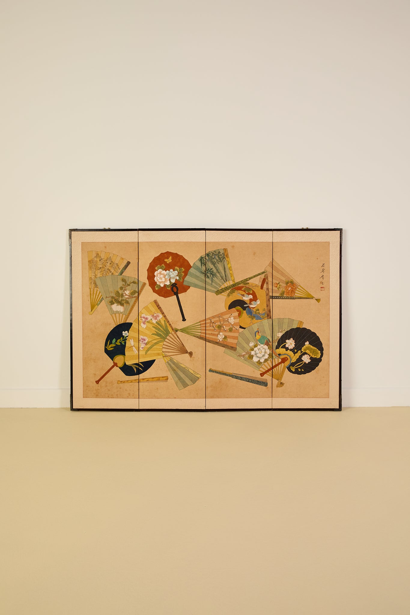 Japanese Four Panel Screen Panting With Fans